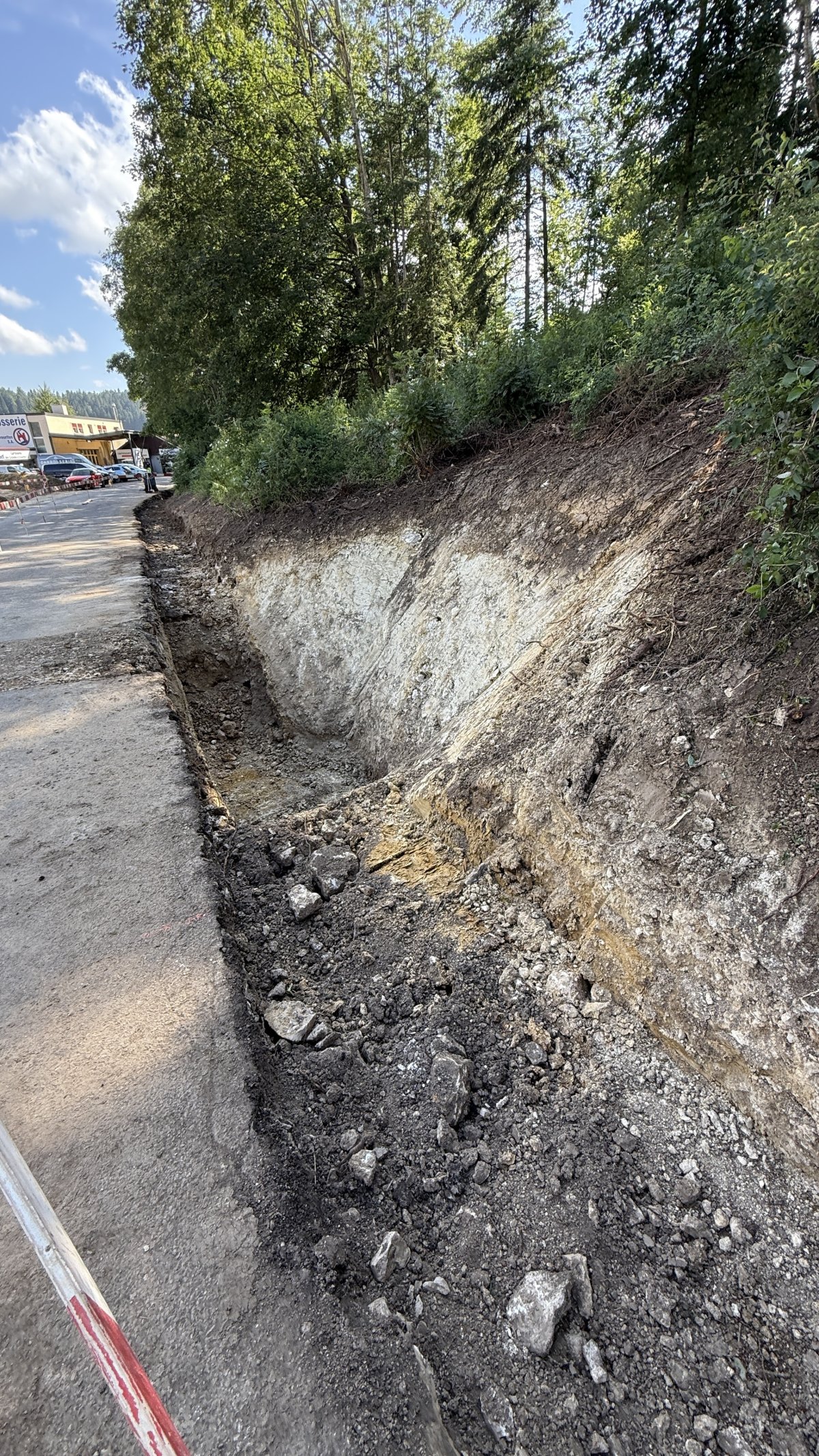 Préparation pour le nouveau mur côté sud vers l'étang existant.